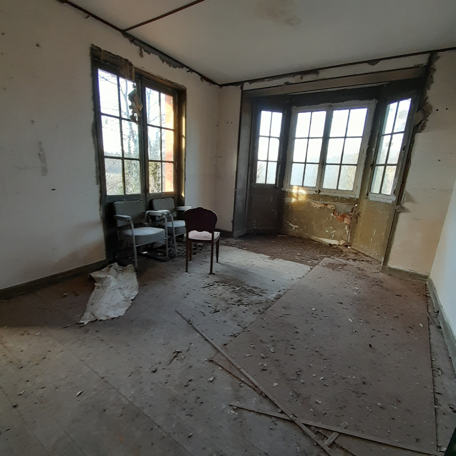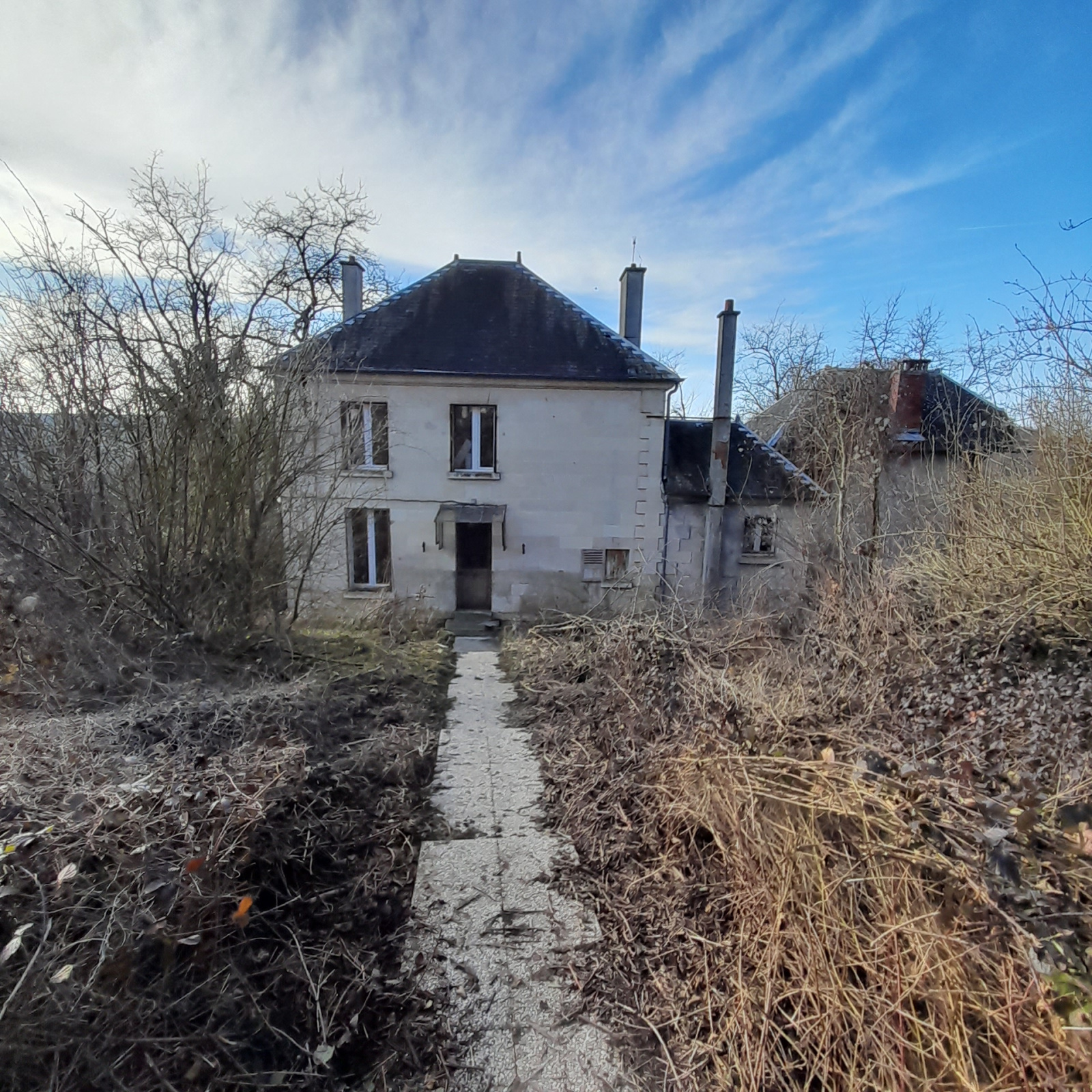 REF 5959LR. PROCHE COUCY LE CHATEAU, Propriété (pierre blanche) de 173m² comprenant une maison de 132m² avec entrée couloir, WC, salon SàM, cuisine, chambre. Etage : palier, 3 chambres, SDB, couloir.,Cette propriété s'accompagné d'un pavillon de 41m² avec pièces, sas. Garage en dessous de la propriété. Partire ss sol (4 pièces). Dépendnace. Aucun moyend e chauffage. Le totu A RENOVER EN TOTALITE. Parcelle de terrain totale de 16500m². PRIX HAI 725000€